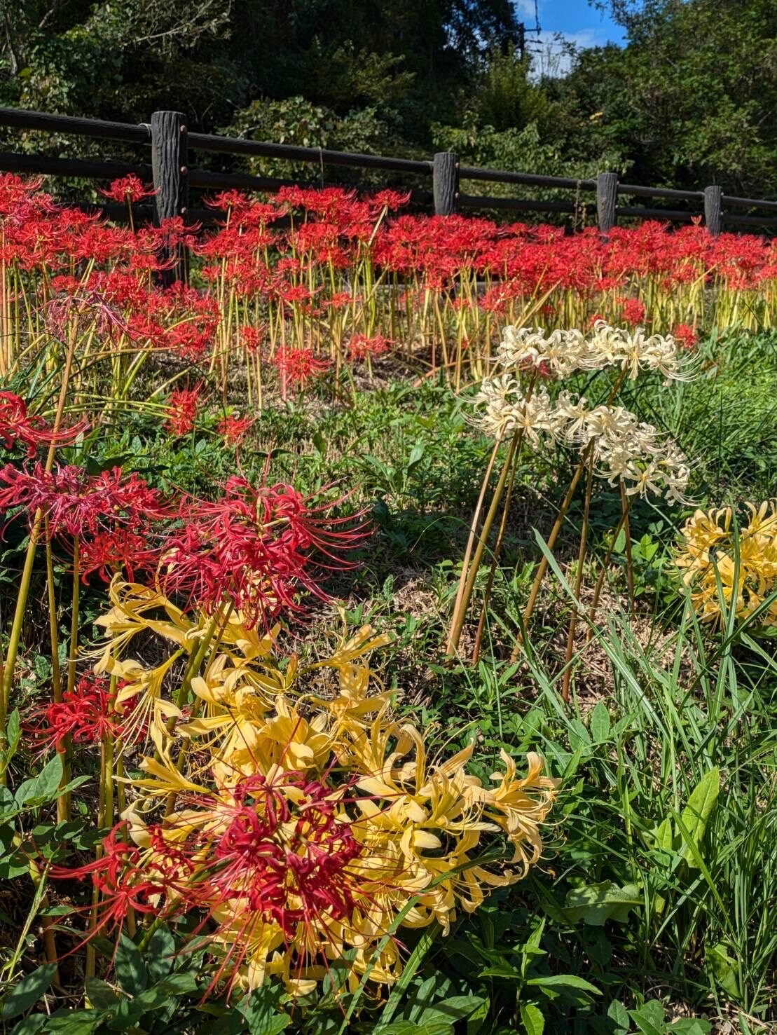 赤、白、黄色の色とりどりの彼岸花(*^^*)
