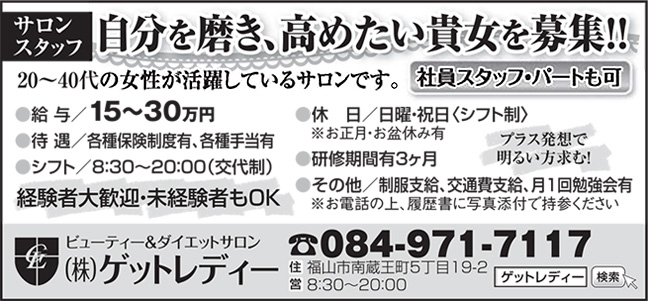 福山市南蔵王町5-19-2 【営業時間】10:00~20:00 【定休日】日曜・祝日 【ご予約】084‐971‐7117